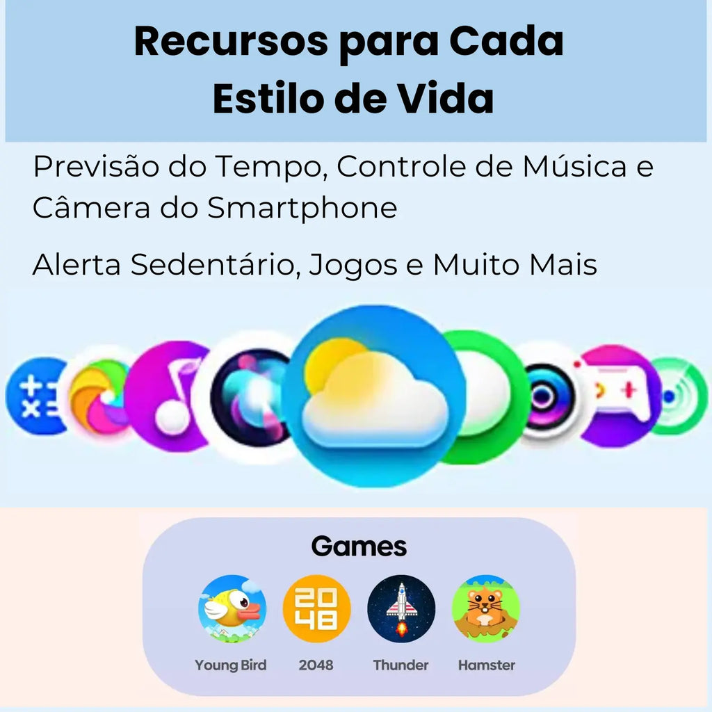 • Alerta Sedentário, Jogos e Muito Mais - Funcionalidades extras para melhorar sua experiência.