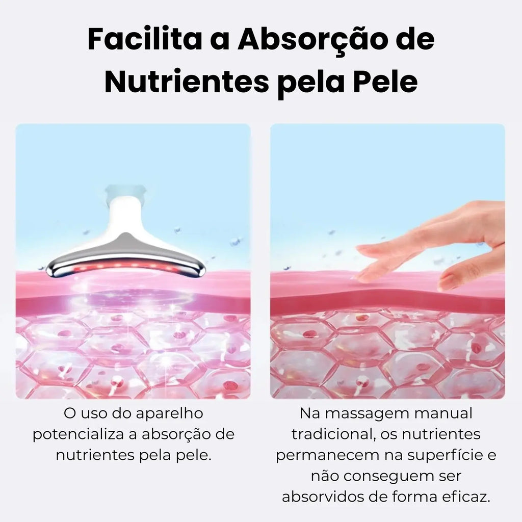Combinação de luz vermelha, verde e azul para estimular colágeno, reduzir inchaços e combater imperfeições.