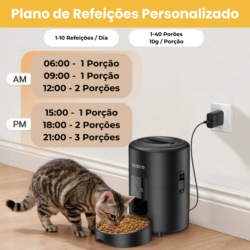 - 🥗 Dieta Personalizada e Saudável: Programe de 1 a 10 refeições por dia com porções precisas. Ideal para pets que precisam perder peso ou que comem rápido demais.